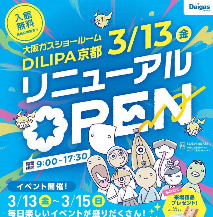 【イベント】3/13(金)~15(日) DILIPA京都(大阪ガスショールーム)リニューアルオープンイベント